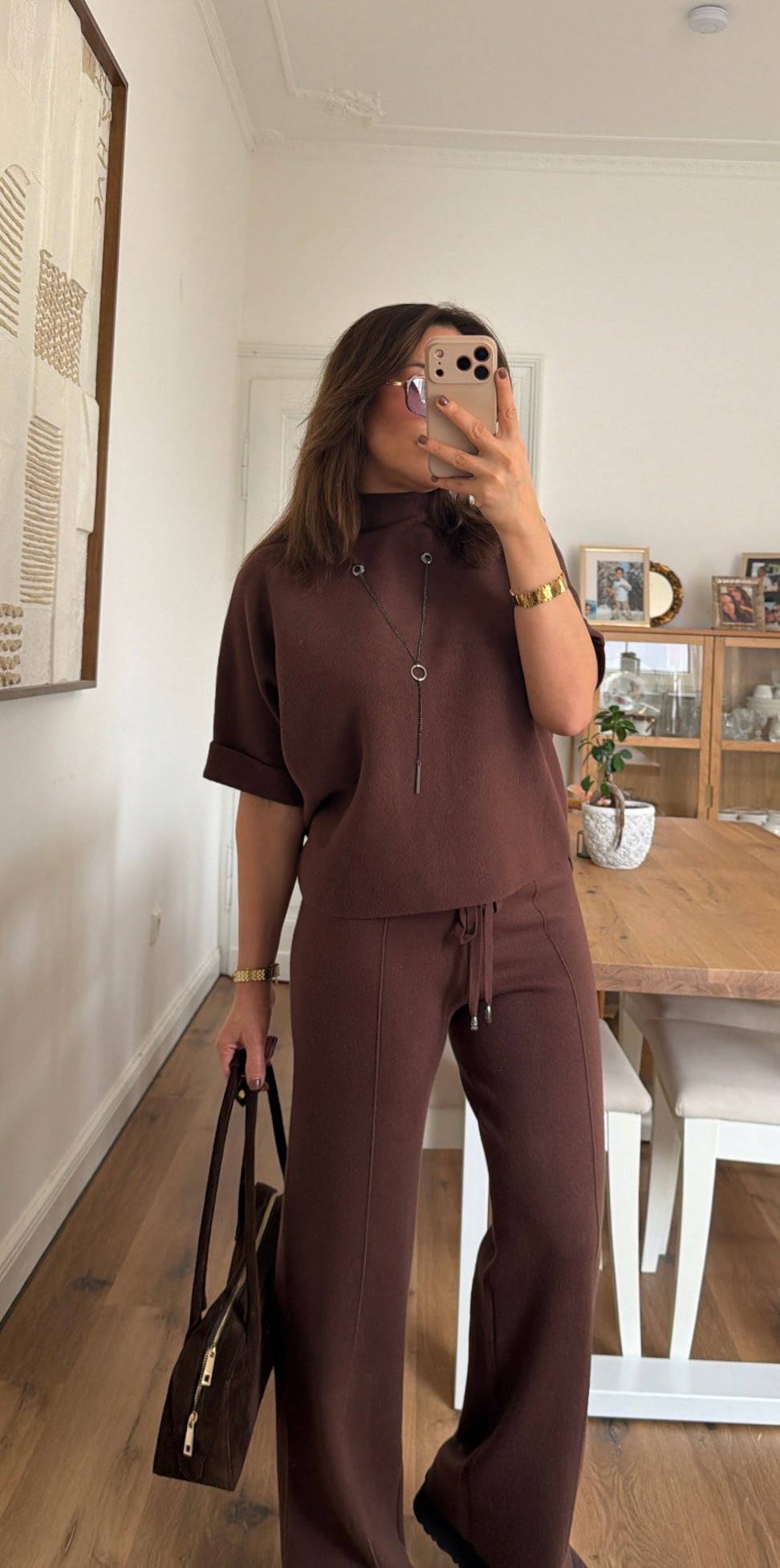 Eleganter Strick-Zweiteiler mit Kettendetail