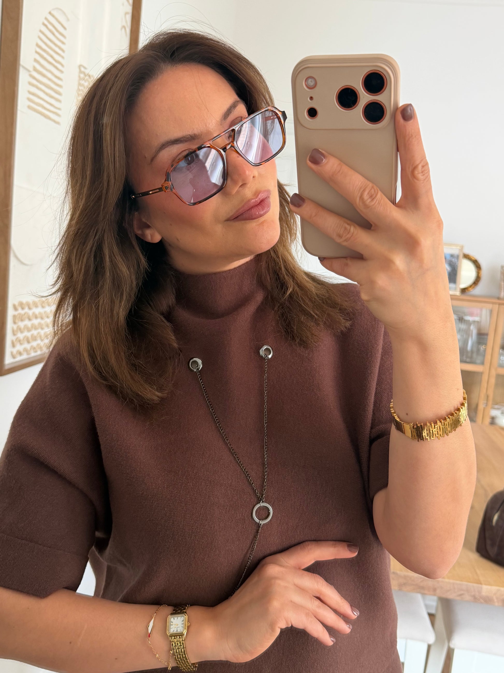 Das süße Kettendetail am Kragen verleiht dem Outfit eine elegante und feminine Note.