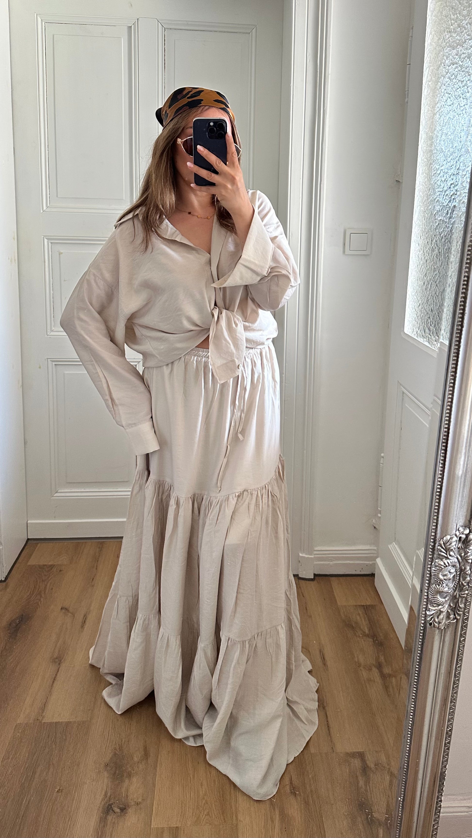 LINA-Zweiteiliges Set – Viskosebluse & Stufenrock
