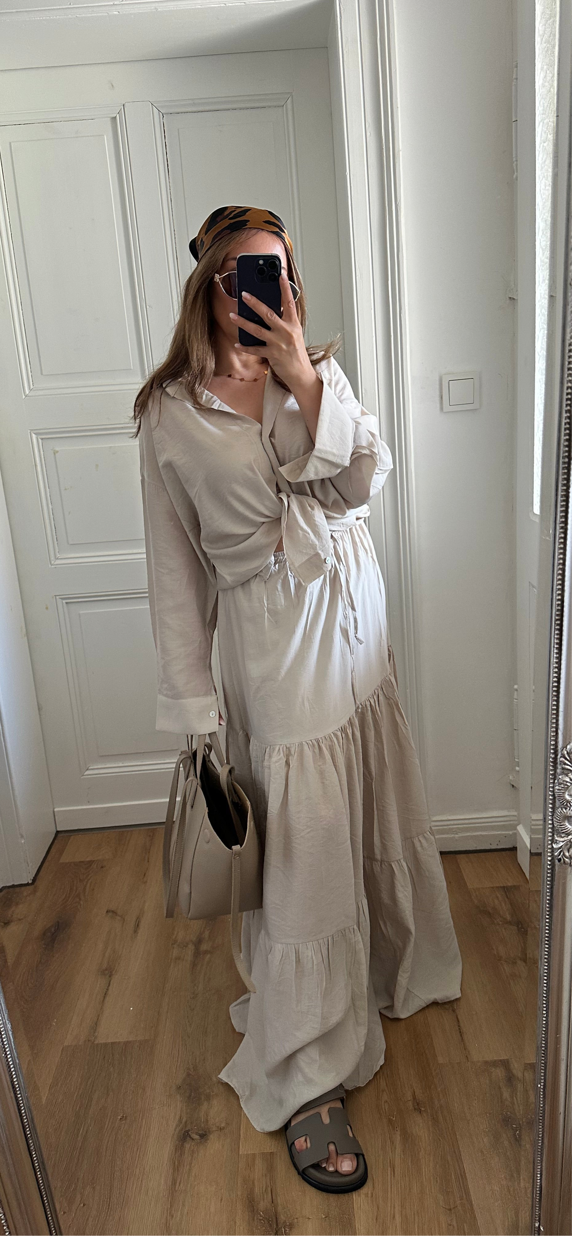 Leichtes zweiteiliges Set aus Viskose – mit lockerer Bluse und luftigem Stufenrock mit Gummibund. Perfekt für warme Tage!